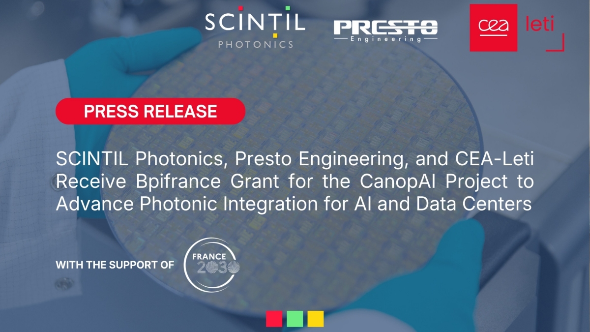 Scintil Photonics develops and markets silicon Photonic Integrated Circuits (PICs). Its circuits are fabricated from a proprietary Scintil Heterogeneous Integrated Photonics (SHIP™) technology manufactured in a multi-customer silicon foundry and leveraging standard silicon photonics. LEAF Light™ is a single chip, integrating DFB laser arrays and multiplexers to offer 8 to 16 muxed frequencies (100 GHz or 200 GHz frequency spacing) on a single fiber. For accelerated adoption, the company also delivers the control electronics and reference package implementations. With sites in France, Canada and the US, Scintil is currently taking its innovative product to industrial level as it gears up for mass production.